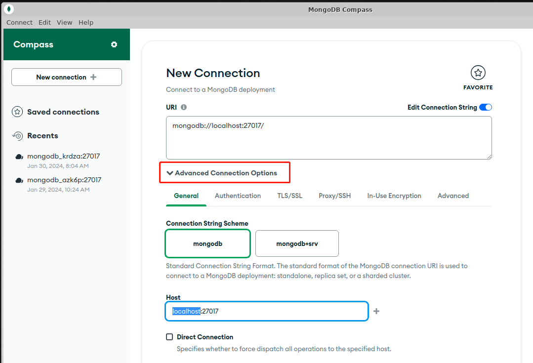 点击桌面的 MongoDB Compass 图标,进入MongoDB Compass