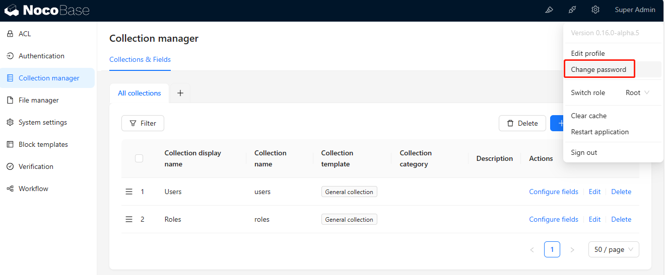登录 Nocobase 后台,立即修改密码后再使用