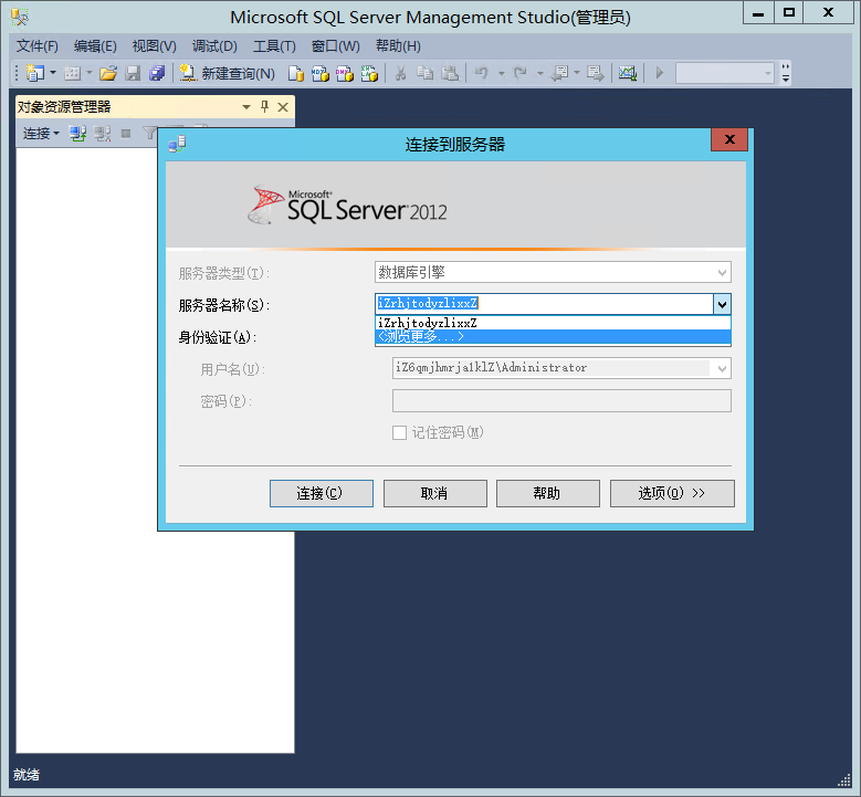 .或(local)或上一步获取的名称,也可以点击 浏览更多... 获取 - 身份验证:选择 Windows身份验证